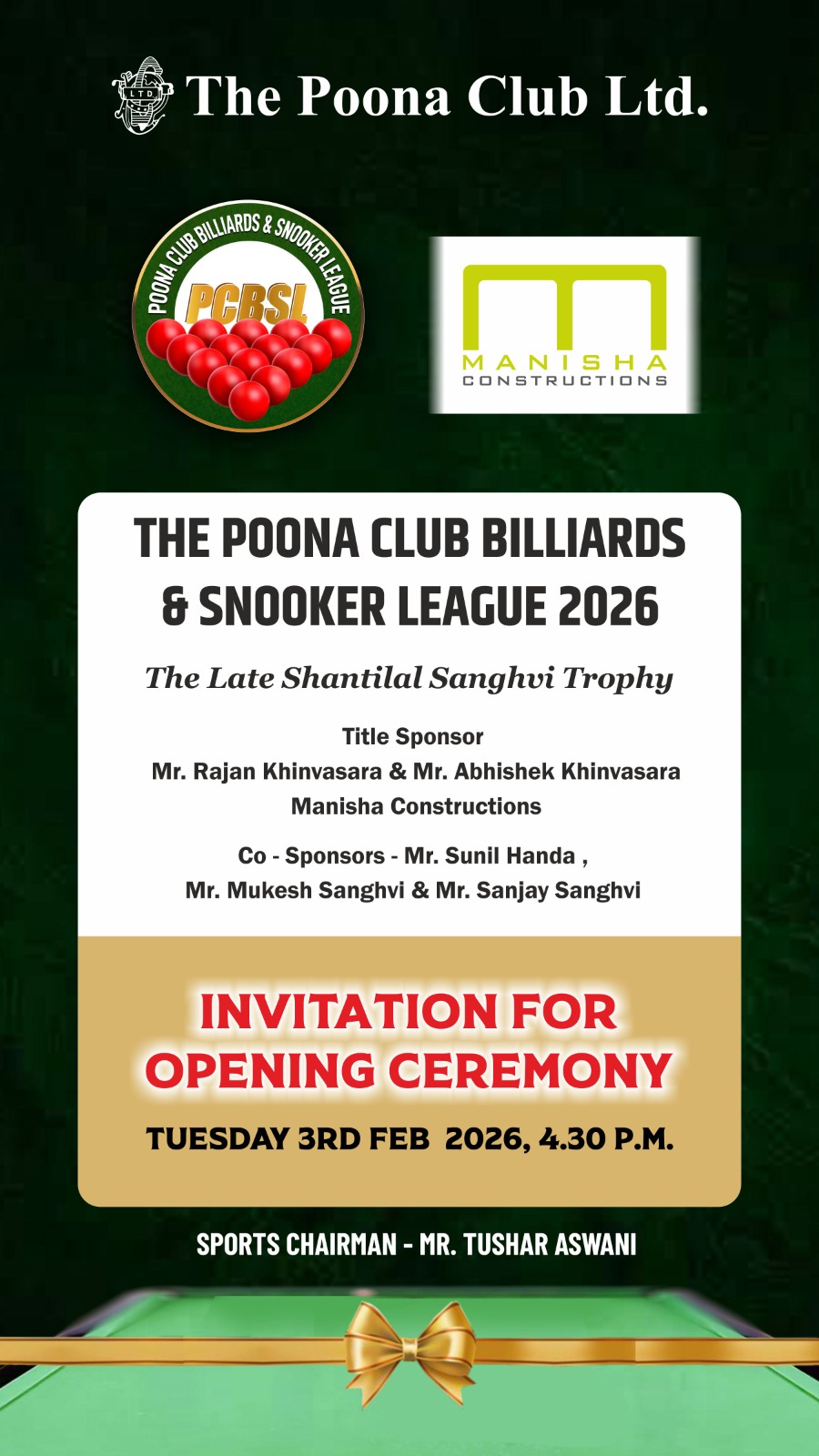 The Poona Club Ltd, is one of the oldest and most prestigious clubs in the country, has completed 131 glorious years of history since 1886 and is ideal for family membership.