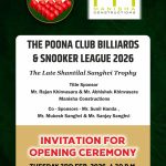 The Poona Club Billiards & Snooker League On 3rd Feb 2026 4.30PM.