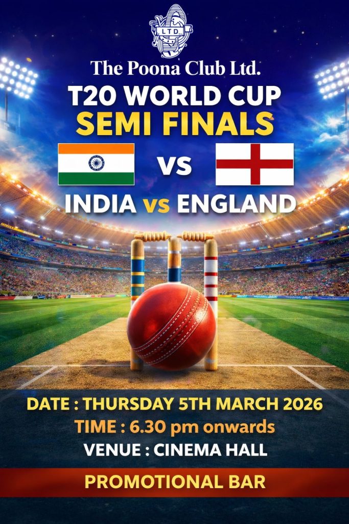 16/01/2026Published by Poona Club LTD at 16/01/2026Categories Box Cricket One Day Tournament On 26th Jan 2026 9.00AM at Cinema Hall