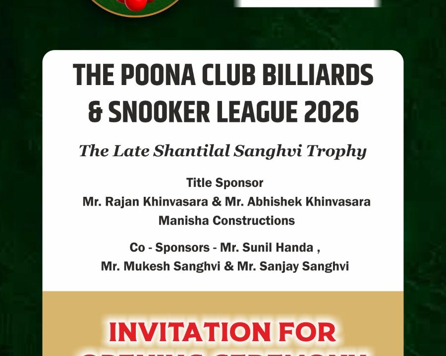 02/02/2026Published by Poona Club LTD at 02/02/2026Categories The Poona Club Billiards & Snooker League On 3rd Feb 2026 4.30PM.