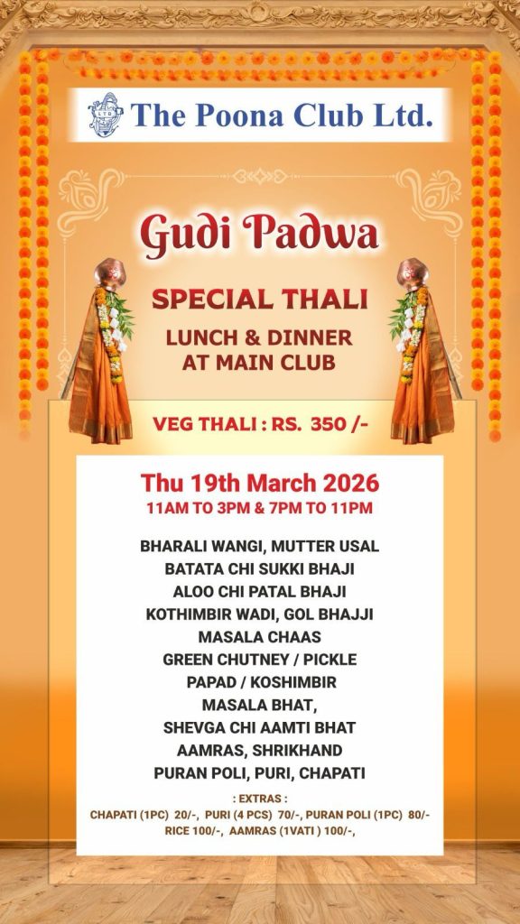 Gudi Padwa Special Thali Lunch & Dinner On 19th Mar 2026 11AM at Main Club