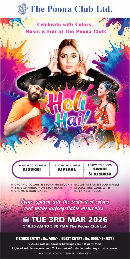 Holi Hai On 3rd March 2026 10.30AM to 5.30PM at The Poona Club